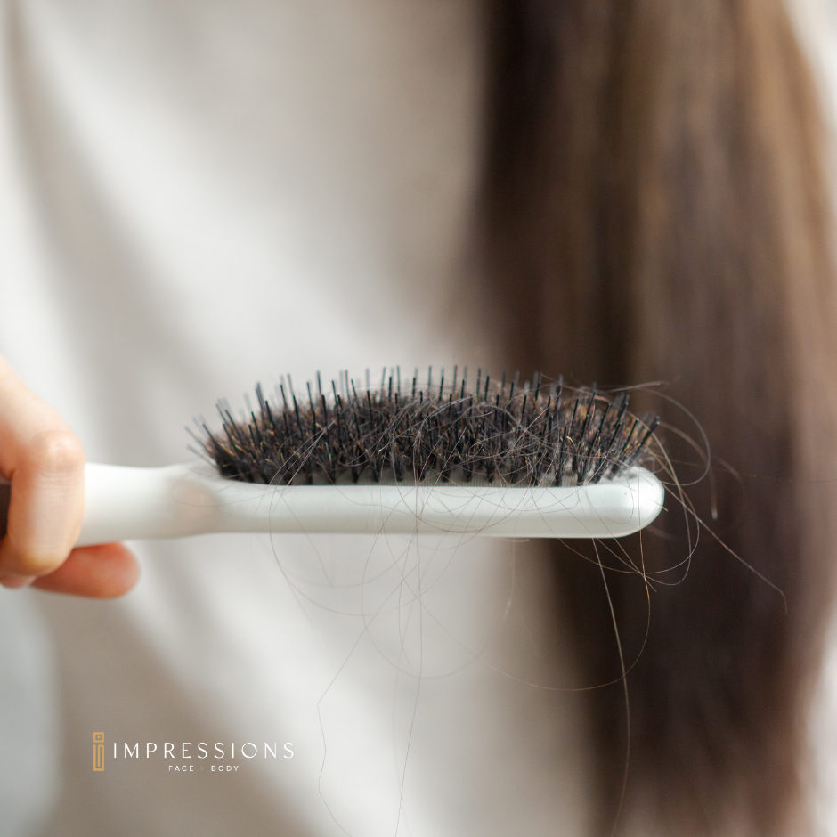 Additionally, hair loss can result from lifestyle factors, such as a diet lacking essential nutrients or physical stress from over-styling and harsh hair treatments. At Impressions Face + Body, we approach hair loss not just as a singular concern but as a complex interplay of factors. Our comprehensive assessments aim to identify the underlying causes of your hair loss, enabling us to provide targeted, effective treatments.